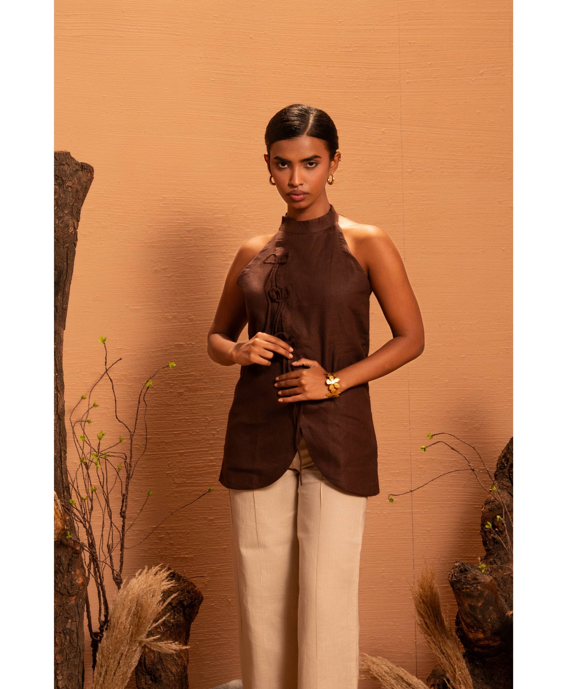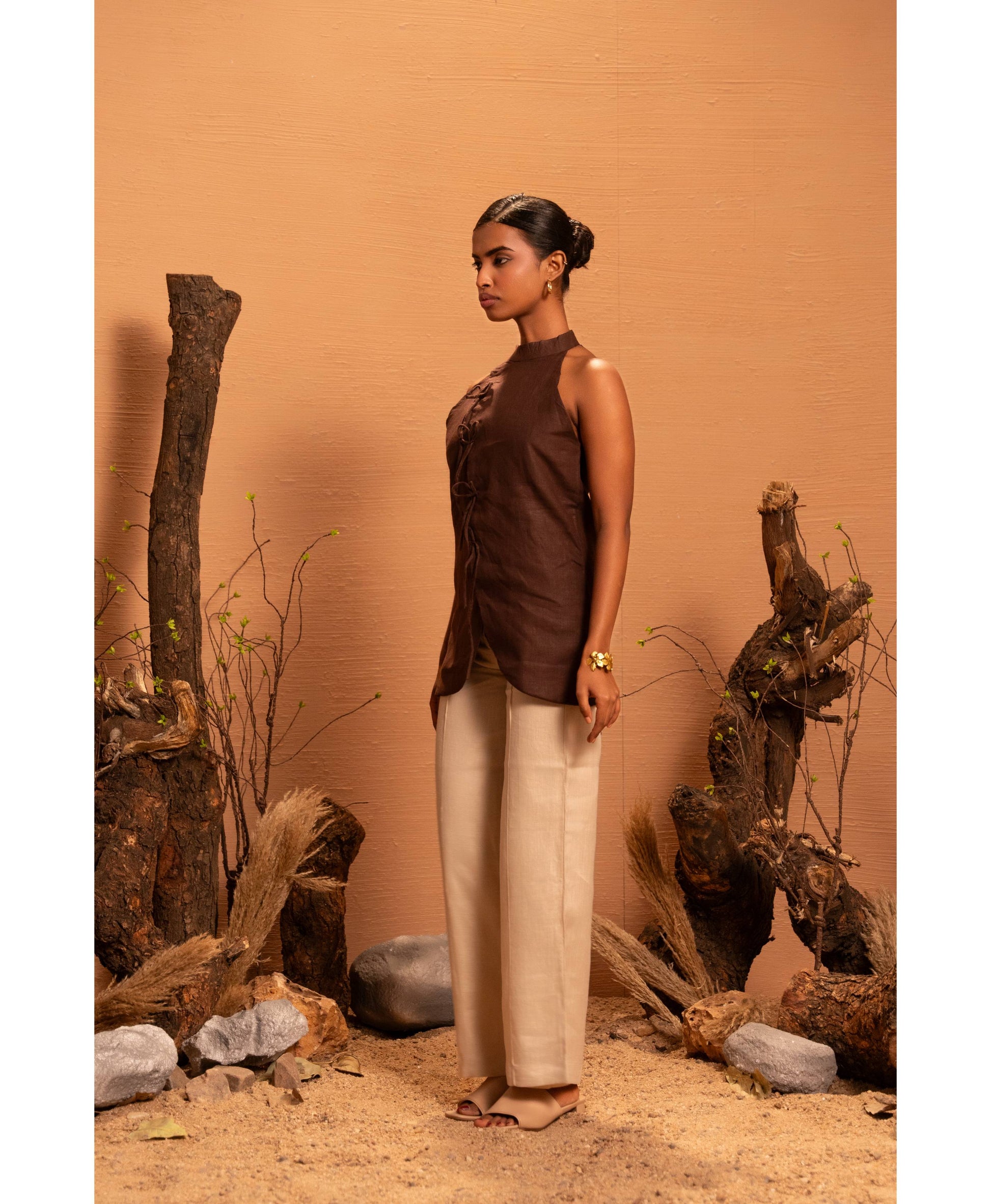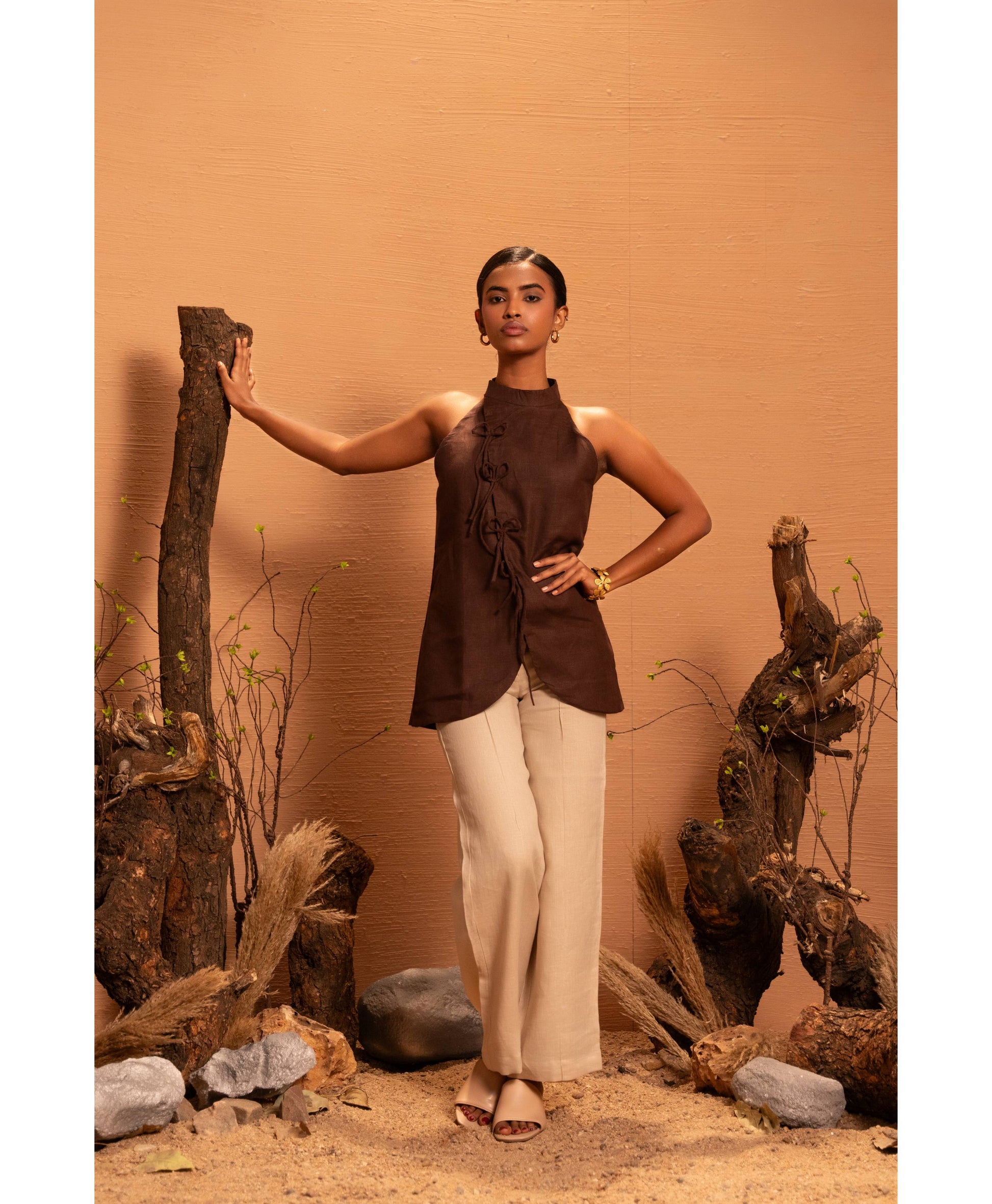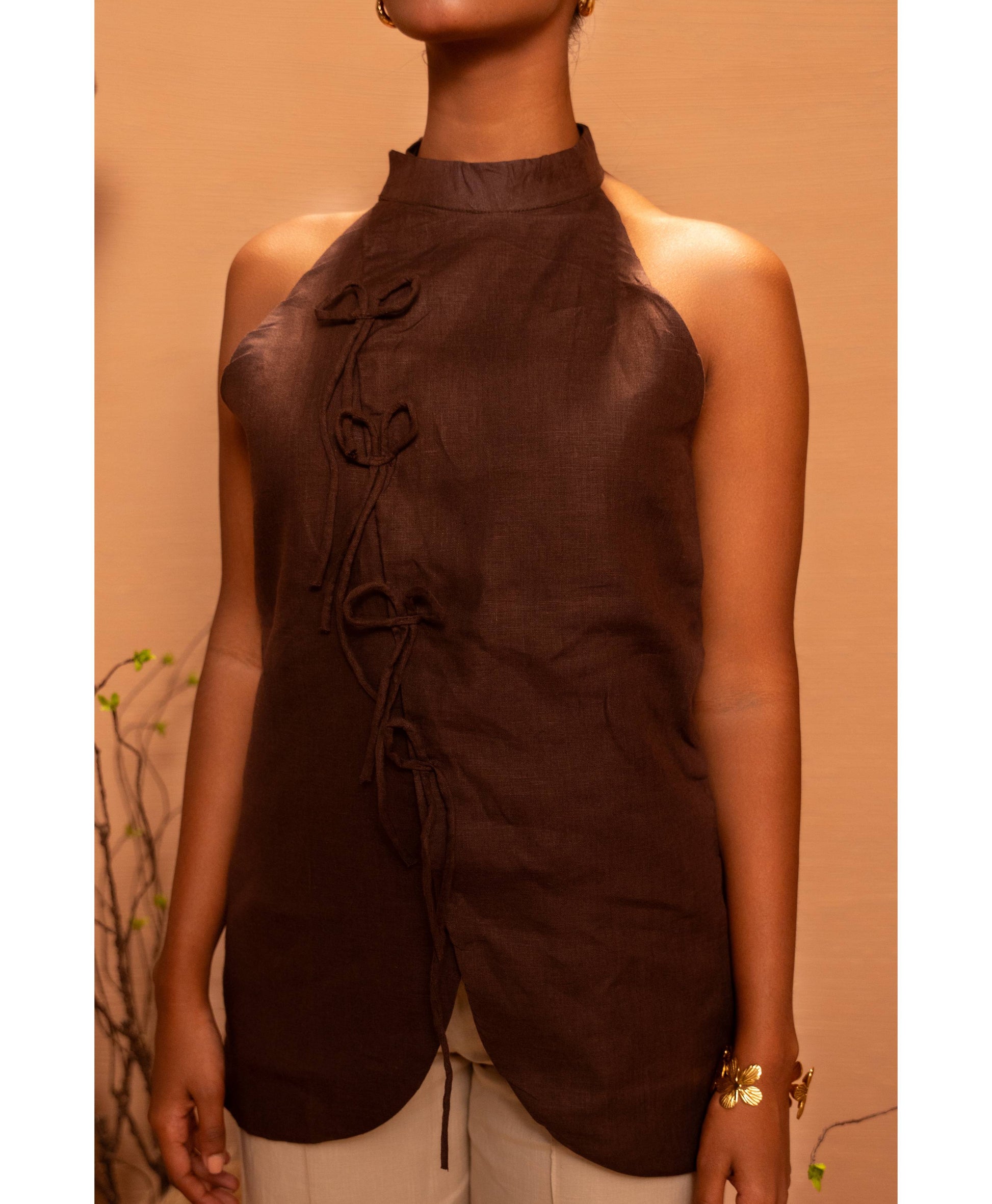 The Mocha Tie-Up Top is a perfect blend of neutral sophistication and modern tailoring. Cut from 100% linen, it features a structured yet relaxed fit, enhanced by side tie-ups that add character. The earthy mocha tone pairs effortlessly with denim, trousers, or skirts — a timeless wardrobe essential.